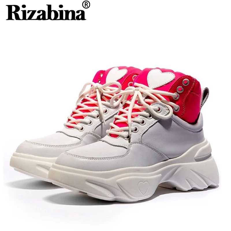 RIZABINA 2020 Genuine Leather Thick Bottom Women Sneakers Ankle Boots Fashion Casual Shoes Woman Ou